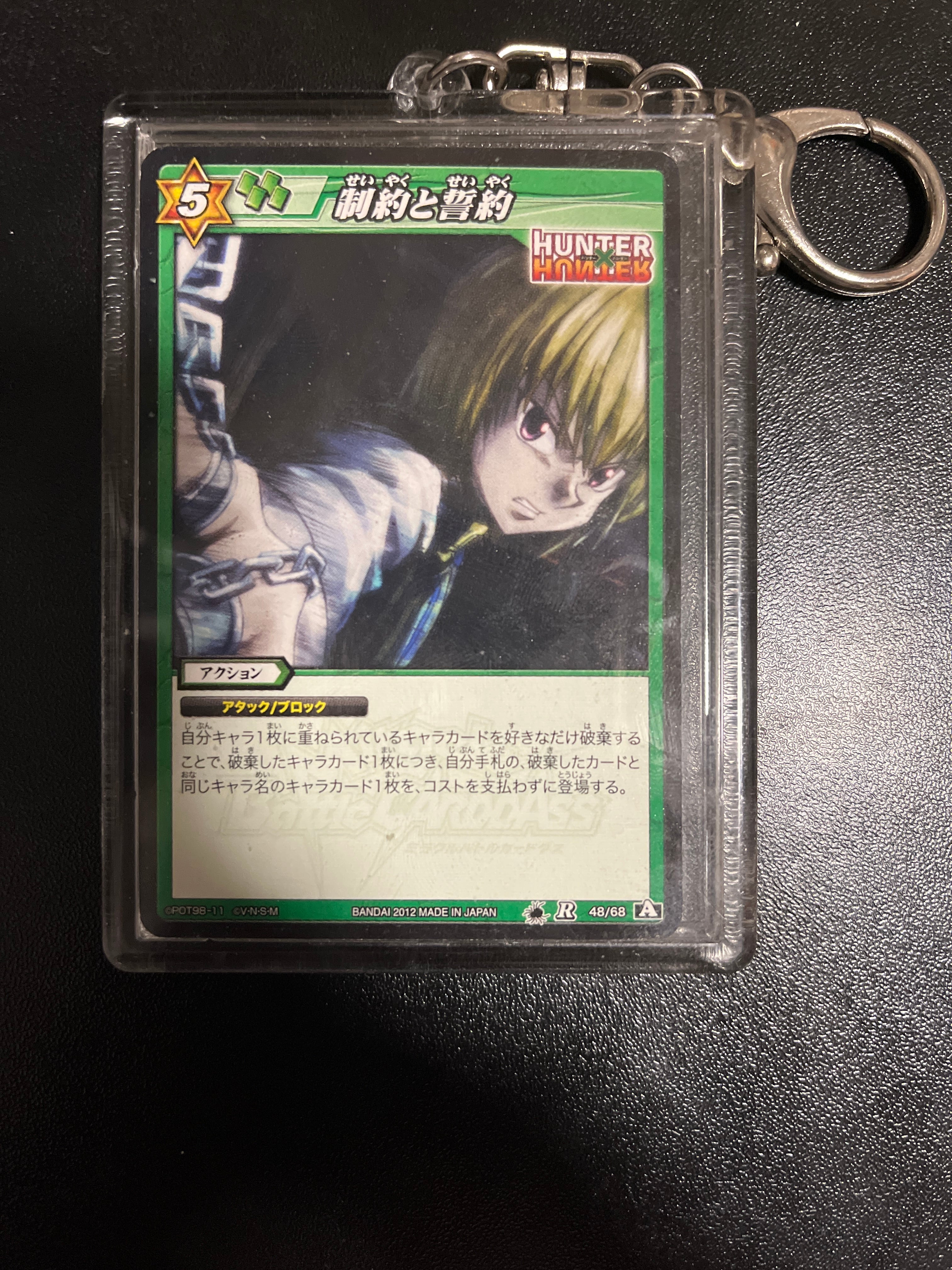 HUNTER × HUNTER(ハンターハンター)のクルタ族の護衛団の「クラピカ」の「制約と誓約」のRカードをカードケースキーホルダーに挟みました!