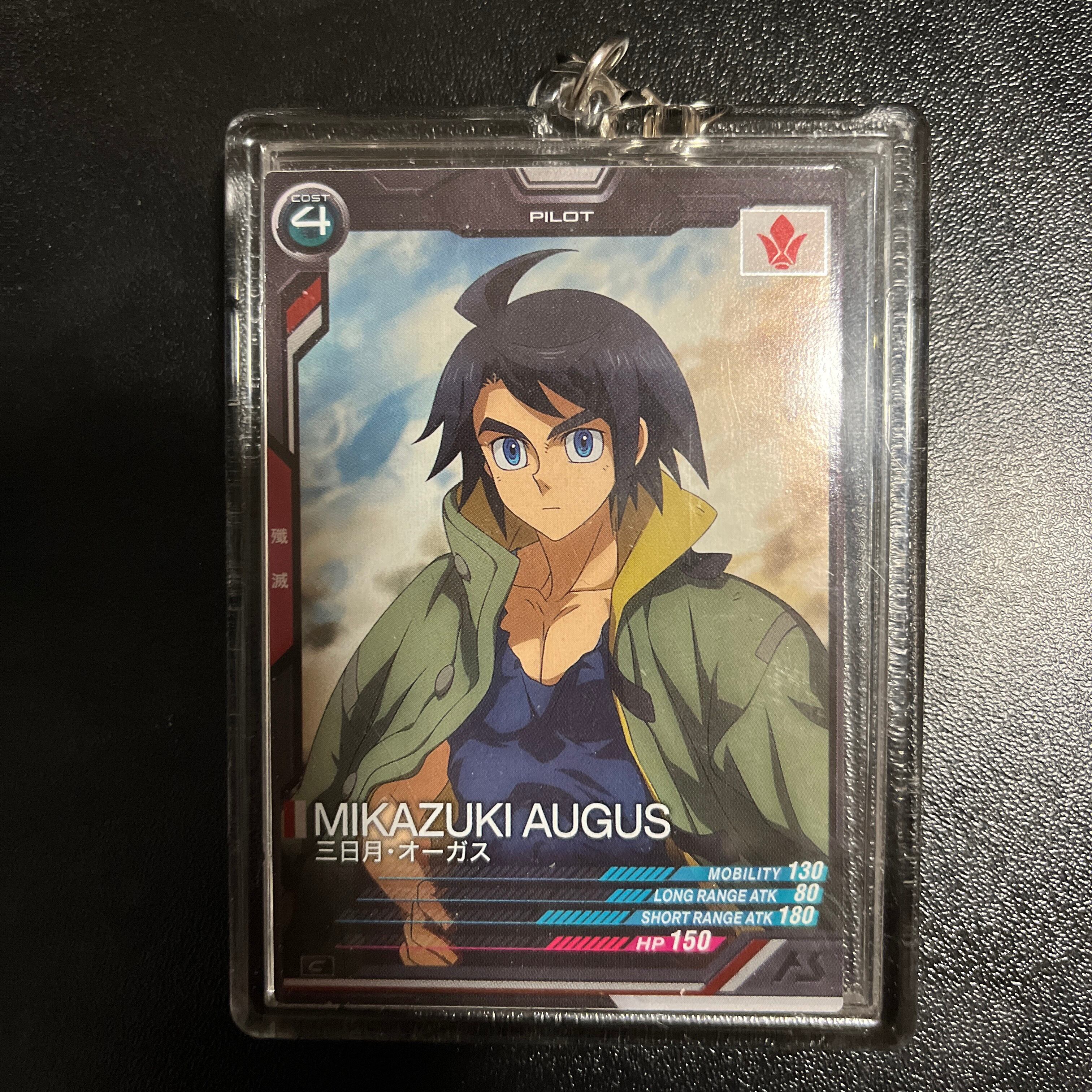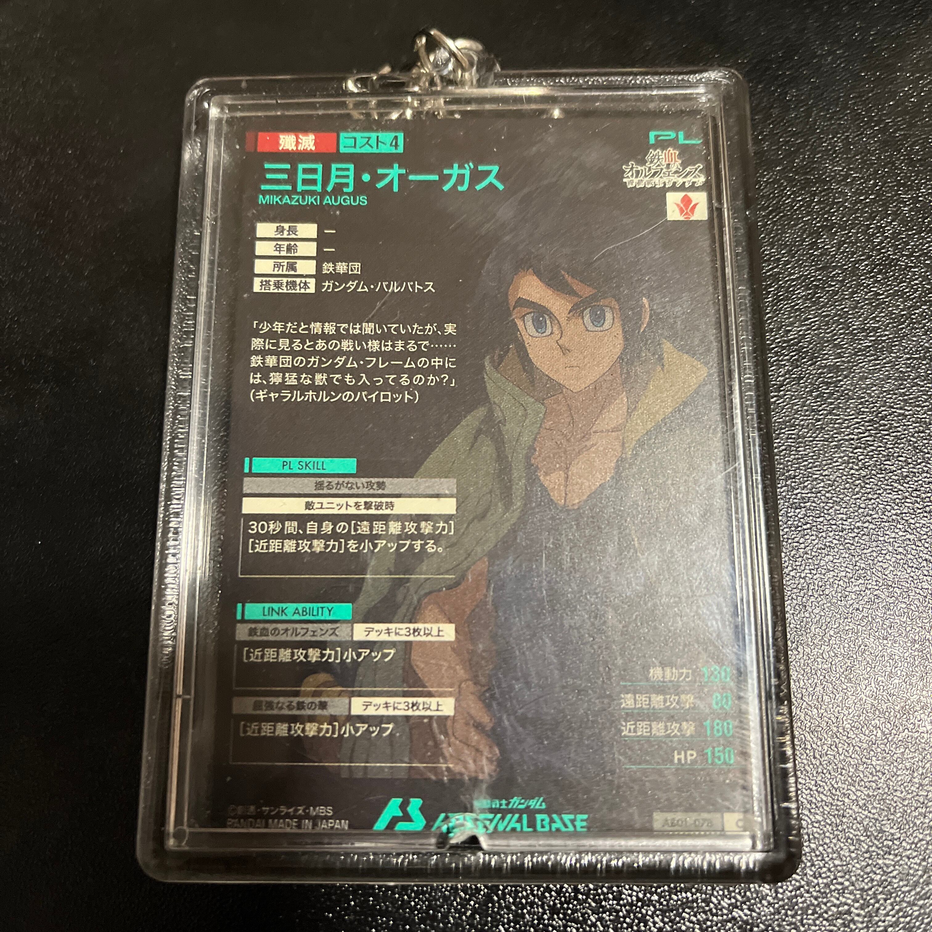 機動戦士ガンダム鉄血のオルフェンズ(鉄オル)の鉄華団の「三日月・オーガス(三日月)」のカード1枚をカードケースキーホルダーに挟みました!