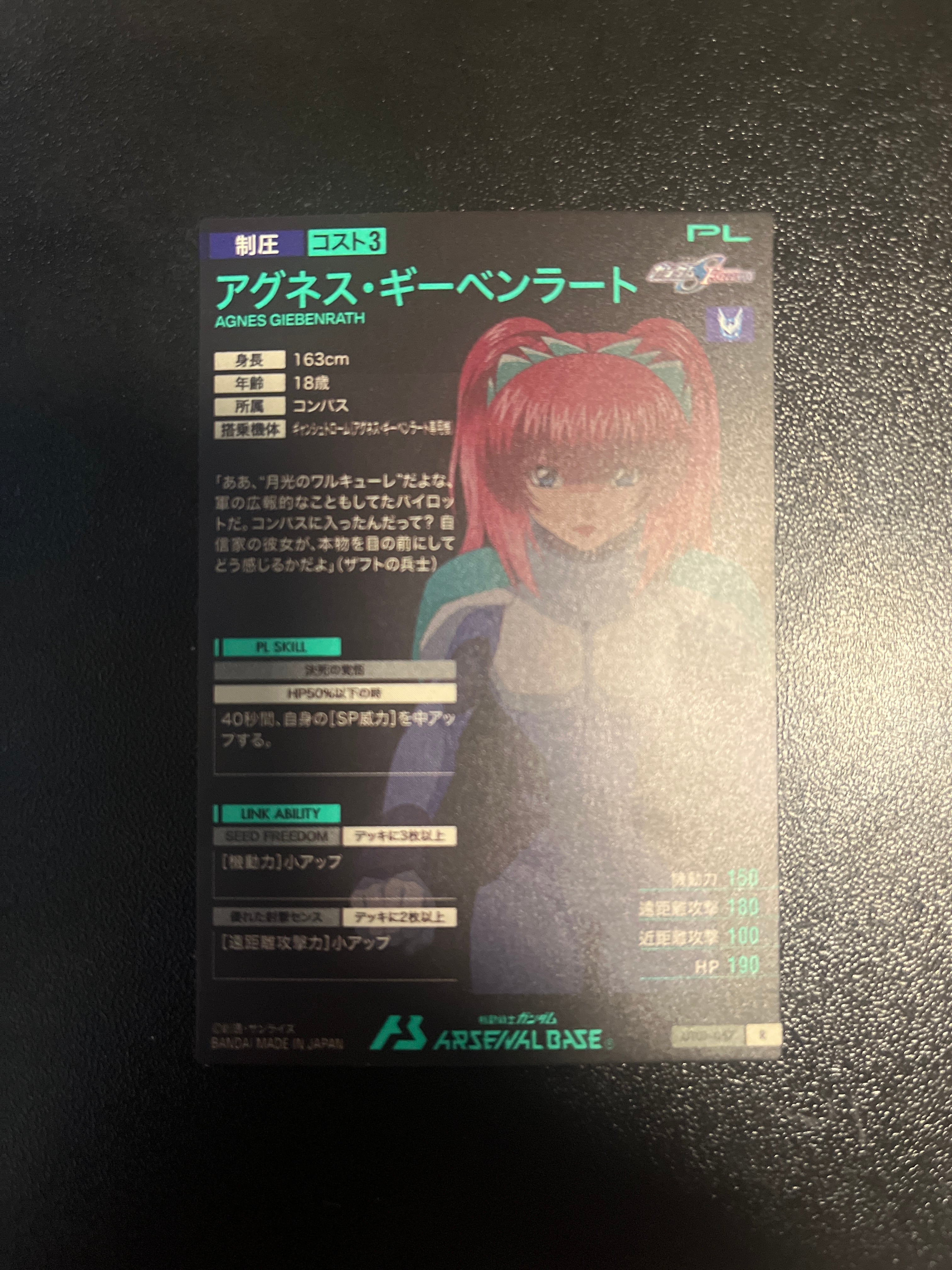 機動戦士ガンダムアーセナルベース(アセべ)の世界平和維持機関コンパスの「アグネス・ギーベンラート(アグネス)」の(制圧)のカード単品販売です!